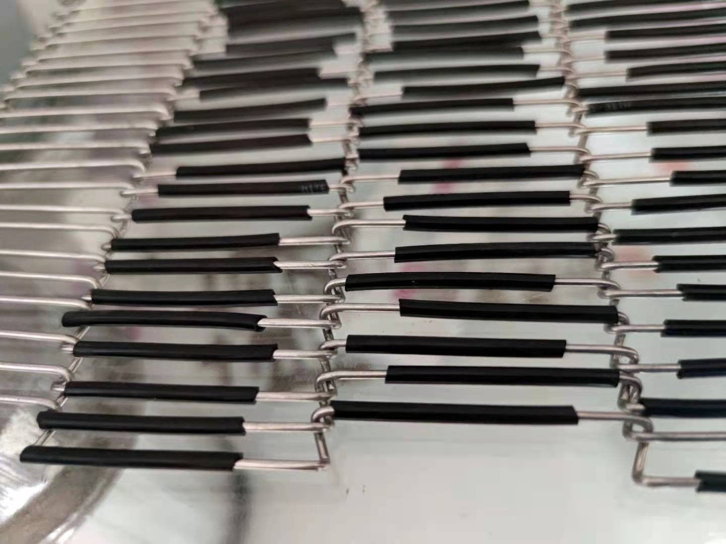 太陽能光伏網帶: 太陽能光伏網帶廣泛應用在硅晶硅片光源爐,烘干爐,燒結爐的產品輸送, 材料主要有310S,314,Cr20Ni80; 編織方式采用平衡型,單雙軌輸送中,網帶平面焊接頂針,減少硅晶片和網帶的接觸面,保證了設備中組件的安全,我公司提供多種頂針支撐規格供您選擇,保證硅片的安全輸送。 其中部分光伏網帶頂針經過納米涂層處理后,大大的提高了使用壽命。